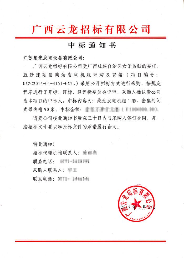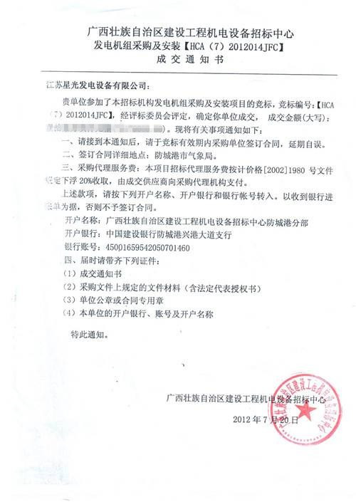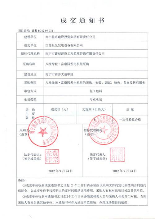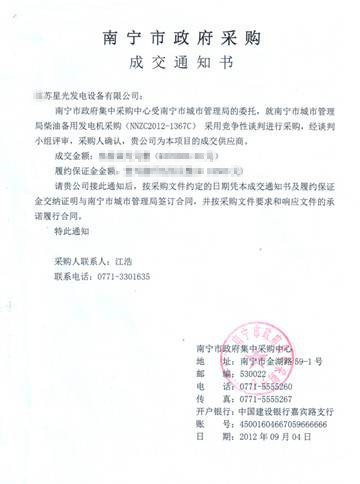 中標(biāo)通知書