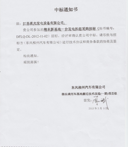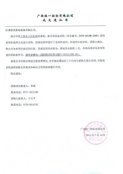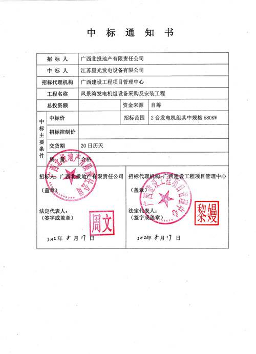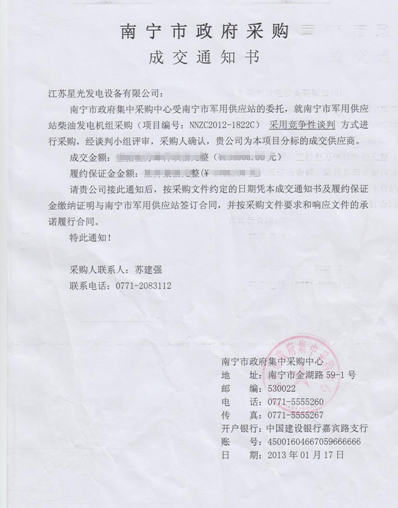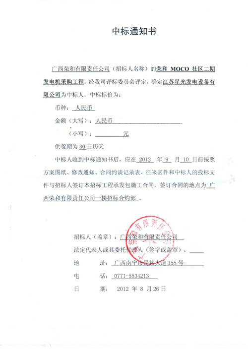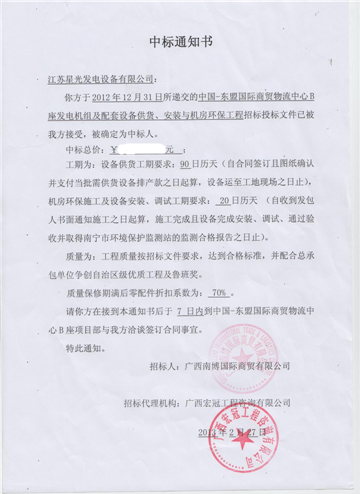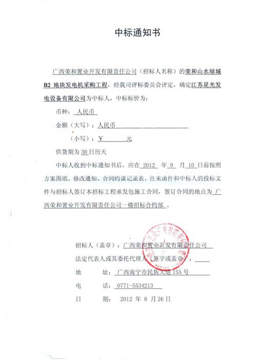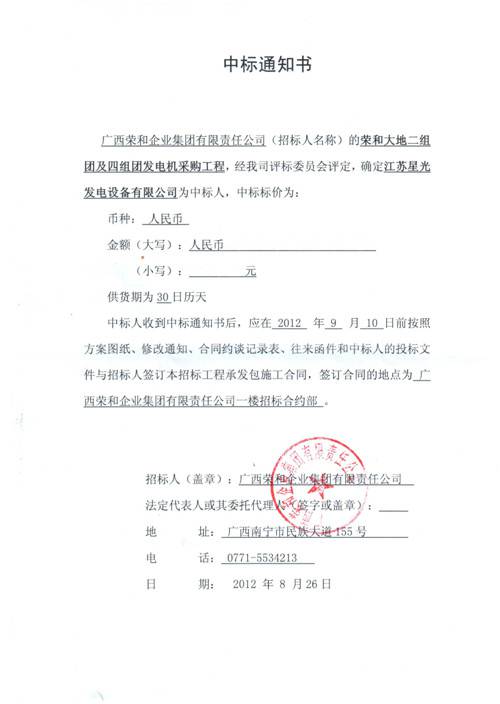 中標(biāo)通知書