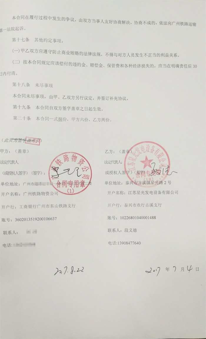 江蘇星光動力集團 >> 新聞動態 >> 我公司成功簽訂廣州鐵路物資公司17臺100KW柴油發電機組