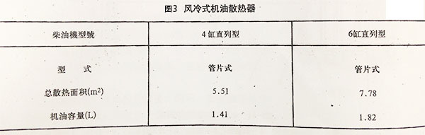 用于4、6缸直列型柴油發(fā)電機(jī)組的風(fēng)冷式機(jī)油散熱器,有兩種規(guī)格,如圖3。12缸V型柴油機(jī)無風(fēng)冷式機(jī)油散熱器。