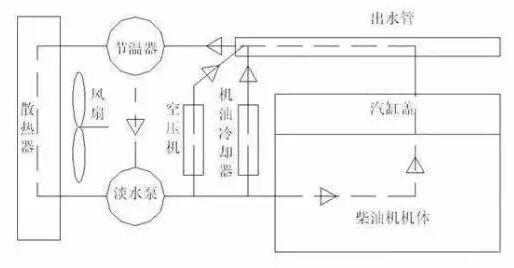 當(dāng)柴油發(fā)電機組發(fā)動機的水溫高的時候,水泵泵水反復(fù)循環(huán)借此來降低發(fā)動機的溫度,(水箱構(gòu)成是一根根空心的銅管。高溫水進到水箱經(jīng)過風(fēng)冷又循環(huán)到發(fā)動機缸壁)達(dá)到保護發(fā)動機的目的,冬天水溫如果過低,這個時候就會停止水的循環(huán),避免柴油發(fā)電機組發(fā)動機溫度過低。