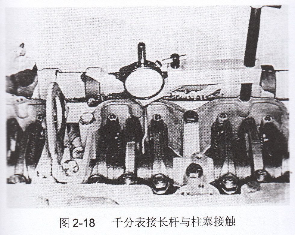 2、裝好3375842千分表和支架,使接長桿位于柱塞上方(如圖2-18)。確保接長桿裝于千分表頭部,且不能與搖臂相碰。