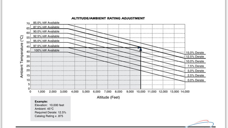 1、海拔高度:為海拔1000米以下的使用條件的標(biāo)定功率,高于1000米海拔功率要根據(jù)修正表加大功率選型修正,高原區(qū)域還需要做防電暈處理。(電暈簡單表現(xiàn)就由于高原電離層作用,白天看不出,但黑暗狀態(tài)下,運行中的發(fā)電機會有一層藍光包圍著,雖然不會傷害人和影響產(chǎn)品質(zhì)量,但比較嚇人)