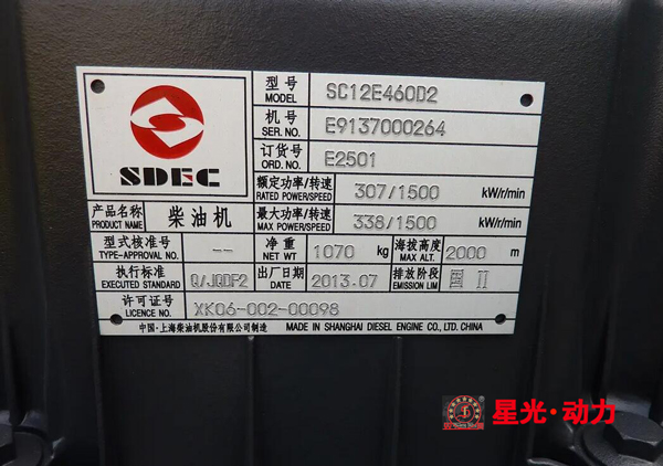 上圖的型號(hào)“SC12E460D2”,你們知道什么意思嗎?下面江蘇星光動(dòng)力的小編為你們分享下怎么看柴油機(jī)銘牌。