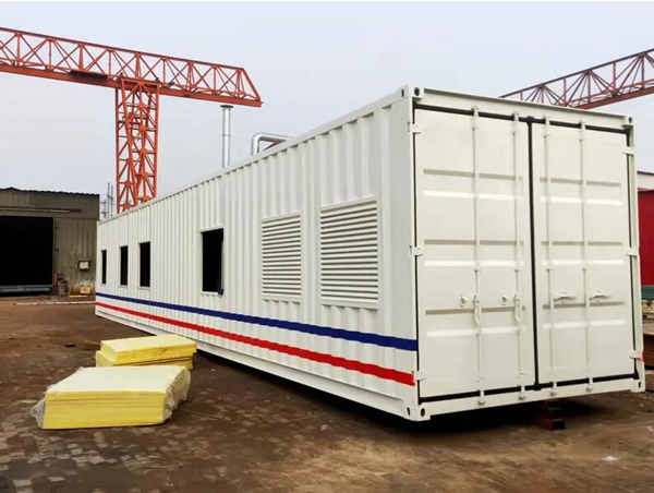 ⑤方艙(集裝箱)式機組 方艙式機組的外觀如圖1-5所示。方艙式機組是將整臺基本型機組安裝在方艙內(nèi),是專門為野外工程建設供電而設計制造的機組,機組功率一般在300kW以上。