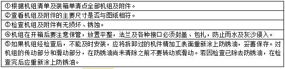 (2)開箱檢查 開箱之前將箱上的灰塵泥土掃除干凈,并查看箱體有無損傷,核實箱號及數(shù)量。開箱時要注意切勿碰傷機件。開箱的順序一般從頂板開始,在頂板開啟后,看清是否屬于準備起出的機件。然后再拆其他箱板,如拆頂板有困難時,則可選擇適當處拆除幾塊箱板,觀察清楚后,再進行開箱。開箱后應(yīng)做好以下幾項工作。
