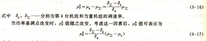 由于第k臺機組和當(dāng)量機組的調(diào)速率δ不同所引起的μk δ為