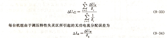 從以上式子不難得出結論,具有無差特性的發(fā)電機參加并聯(lián),比如第k臺機組的δk=0為無差特性,由于失靈區(qū)的存在,按式(9-34)有△δεk=∞,也即該機組的負載分配誤差將不受到本機組特性的限制,負載的均勻分配無法保證。從式(9-30)及式(9-33)可以證明,當有一臺機組具有無差特性時,整個電站也具有無差特性(只要把該式的分子和分母各乘以δx≈0,即可得出此結論),電站的失靈區(qū)將等于無差特性機組的失靈區(qū),即△IεΣ=△Iεk。如果在并聯(lián)機組中有兩臺以上具有無差特性,則這兩臺機組的負載分配就具有完全的任意性,一些偶然性因素的影響,完全會使一臺機組承擔全部負載,甚至過載,而另一臺機組則會空載,甚至吸收無功負載,直至其中的一臺機組進入特性的有差區(qū)域(如過載飽和的區(qū)域)為止,這樣對發(fā)電機及其勵磁系統(tǒng)顯然是十分有害的,所以兩臺具有無差特性的機組參加并聯(lián)是不允許的。