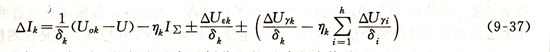 式(9-36)中的非線性電壓偏差△Uγk豫和△Uγi應該看作代數(shù)量,即高于直線特性的偏差為正,低于直線特性的偏差為負。事實上△Uγi是隨電流而變化的,而電流本身又是待求量,而且各個機組的△Uγ,值也有差別,因此用式(9-35)和式(9-36)作準確計算是困難的,只能作定性分析和大致估計非線性所引起的電流偏差范圍。