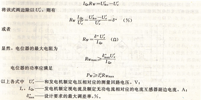 對于已經(jīng)具備無功電流均衡裝置的發(fā)電機組,改變其可調(diào)電位器Rw的阻值,就可改變其調(diào)差率。配合以空載電壓的整定,使各并聯(lián)發(fā)電機組具有相同的電壓調(diào)整特性并不困難。對于沒有無功電流均衡裝置的發(fā)電機,就需要加裝調(diào)差裝置,其計算也不復雜。