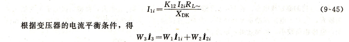 因?yàn)?/span>W1繞組的負(fù)載XDK為純電感性的,W2的負(fù)載RL~為純電阻性的,所以I1i和I2i在相位上相差約90°,即