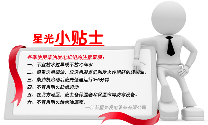 冬季應(yīng)選用凝點低和發(fā)火性能好的輕柴油,柴油的凝點應(yīng)低于本地當(dāng)前季節(jié)最低氣溫7-10℃。因為冬季的低氣溫會降低柴油的流動性,使粘度增大,不容易噴散,容易造成霧化不良,不能充分燃燒,從而導(dǎo)致柴油發(fā)電機的動力下降,造成浪費。